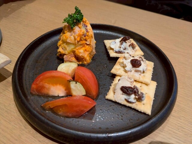 いぶりがっこのマスカルポーネ、さつまいものポテトサラダ、トマトと彩野菜の冷製アヒージョの3点でどれもお酒にぴったり!