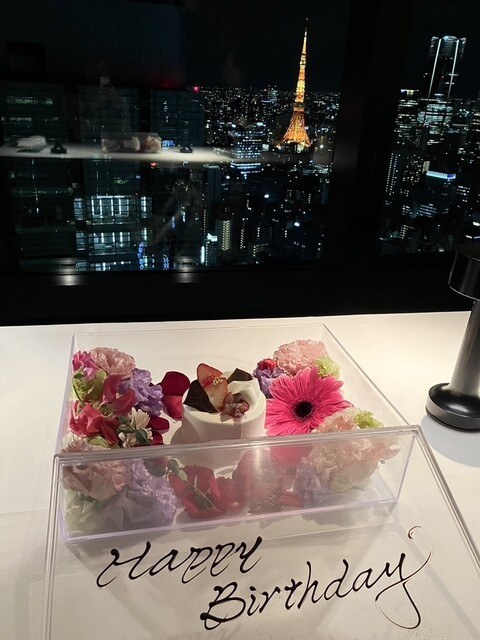 窓際の席で、きらめく景色を独り占めしながら誕生日を祝いました。