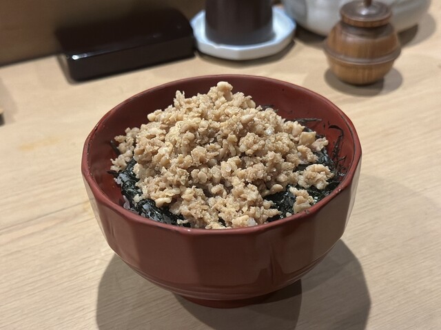 コトー通り(有楽町と新橋の間)銀座の真ん中でおまかせ焼鳥を堪能。当日予約でも入店でき、店内はインバウンド客も多く活気あり。コの字カウンターの中央で職人2名が次々と焼き上げテンポが良い。先付は漬物と大根おろし+うずら卵。ハイボールやレモン酎ハイと合わせて串のリズムが心地よい。鶏は部位ごとの火入れが均一で、銀杏や椎茸などの野菜串も香ばしく旨みが濃い。〆のそぼろご飯は別腹でかき込み、ふわふわのわらび餅まで完走。気取らず“ちゃんと美味しい”を楽しめる一軒。