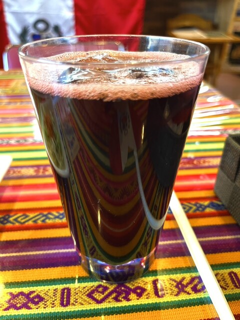 「どこか懐かしいお母さんのペルー料理」とのコピーに惹かれて牛肉メインの「ロモサルタド」と紫トウモロコシジュースを注文した。