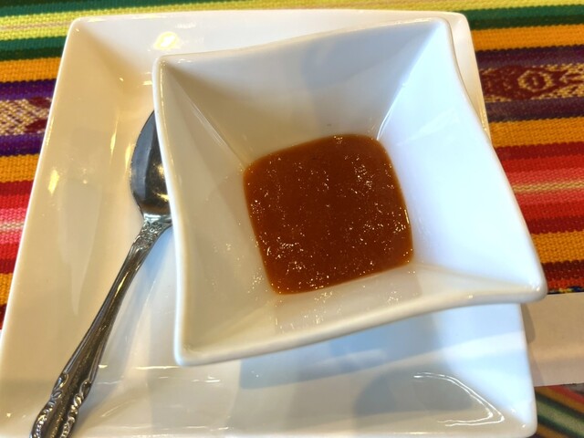 ロモサルタドは塩味が強く若干ニンニクの香りがするが、硬く脂が少ない肉は和牛とは正反対。しかし肉を食べている気になり私は好み。途中で辛さを足してご飯と混ぜて食べ進める。
