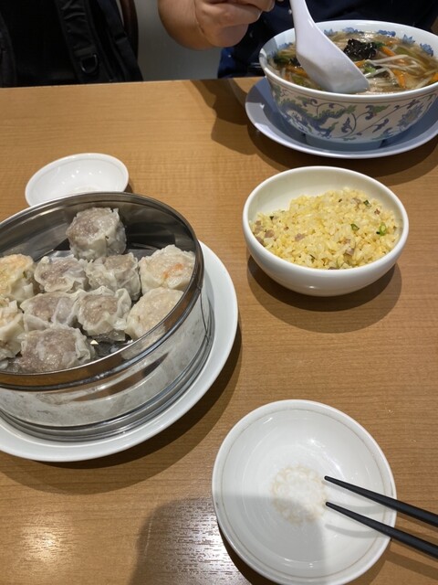 お腹ぺこぺこではなかったので、2人でサンマーメンのミニチャーハンセット、シウマイ盛合せを注文。合計2,620円でした。