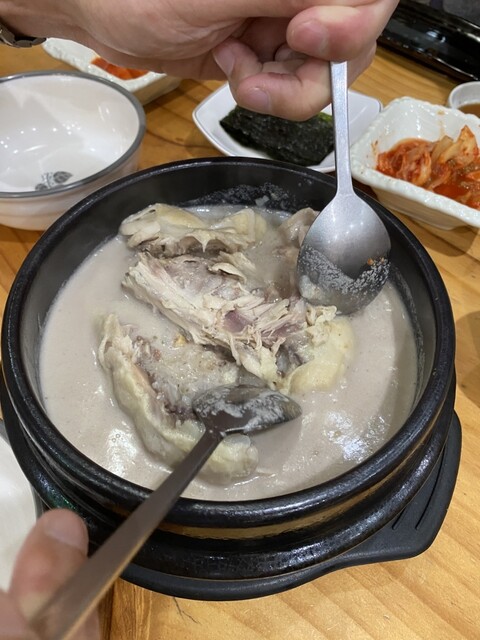 参鶏湯、少し提供までに時間がかかりましたがとても美味しかったです。一緒についてくるカクテキ・キムチは辛すぎず、食べやすかったです。