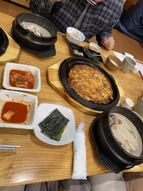 友人と5人で行き、参鶏湯3、チヂミ2種を各1つ注文し、シェアしました。