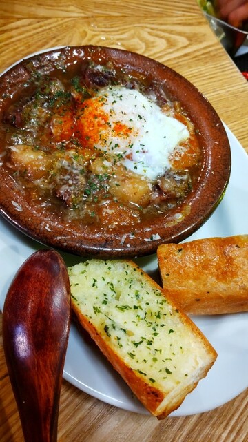 牛すじ肉じゃがも到着☆あっつあつでガーリックトーストとあうー♡♡ガーリックトーストをアヒージョにつけてもおいしかったー♡♡