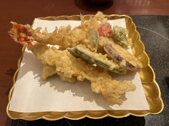 天ぷら盛り合わせも、海老2本、カボチャ、さつまいも、キスなど、これまた盛りだくさん。