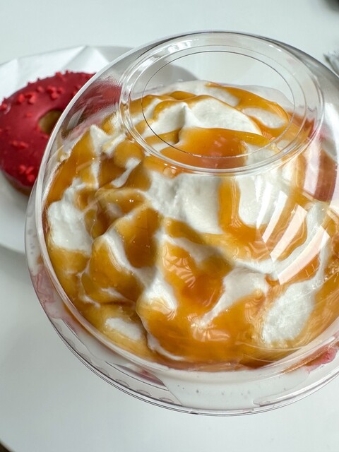 そろそろ飲み納めになりますねスタバの苺シリーズは必ず飲みますが、今までで1番美味しかった気がします!(^^) なんといってもごろっごろの果肉がよかったです笑 生クリーム混ぜながら飲むと最後に甘ったるい感じになるので、キャラメルカスタムで、始めに食べちゃうスタイルです笑 存分に苺楽しめます(^。^) 苺ドーナツも美味しすぎました!