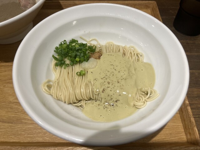 隣の方がまずは和え玉のみで食べていたので真似したら、こちらも絶品、そのままでも全然食べれますがせっかくなのでしっかりと替え玉としてスープ一緒に食べます。