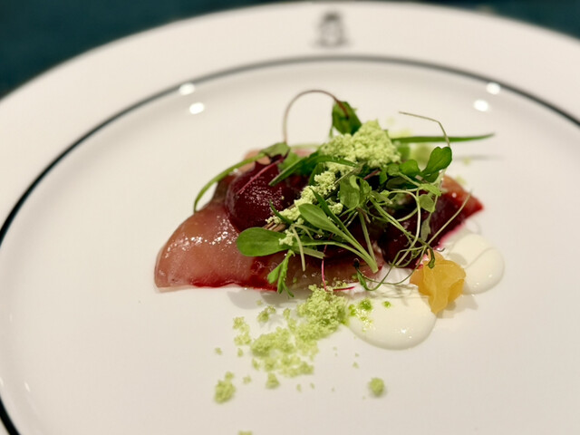 氷見ぶりに、ビーツのドルチェとピューレ、