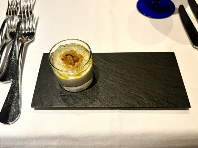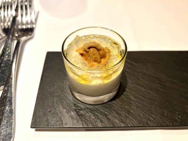 ○新玉ねぎのムーストマトのジュレ 北海道産生ウニ