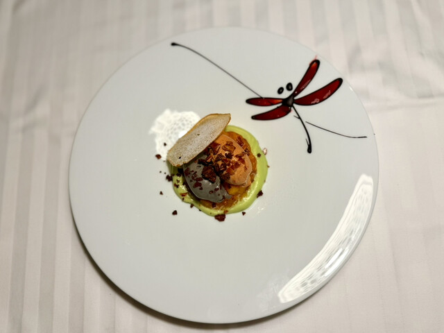春菊のソースとトリュフキャビアを添えて