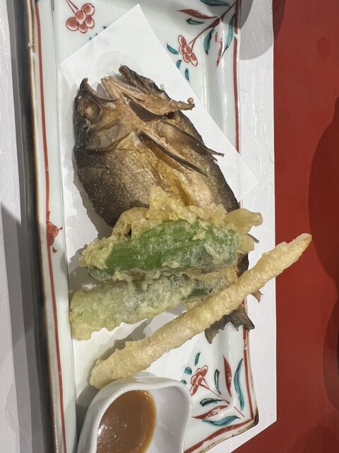 あゆの開きの揚げ物は丸々1匹の鮎が使われており山梨ならではの料理で美味しかったです