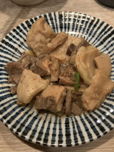 もつ煮込みは和風の味噌仕立てで美味しいです。