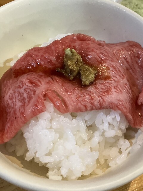 少しレアで食べてみると…サシの甘みがはっきりと分かりますね◎
