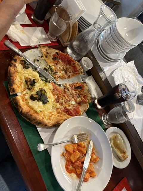 今回はパスタじゃなくてトマトソースのニョッキを友達とシェアしてもらい、ピッツァはメタメタで、マルゲリータと安芸津のじゃがいも、東広島の茄子、モッツァレラ、ジェノベーゼ…じゃがいも得意じゃないけど良い感じにマッシュしてあり芋感無くて美味しかった。