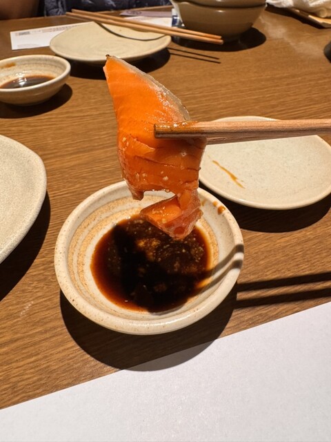 刺身盛り合わせは特に印象深く、サーモン、マグロ、ホタテなどが堂々と並び、見た目からして美しい。地酒と合わせると、仕事の疲れも忘れるほど贅沢な時間に。さらに、炭火で軽く炙られたタラバガニは香ばしさが際立ち、肉厚の赤身ステーキも驚くほど柔らかく、海鮮だけでなく肉料理もレベルの高さを感じました。