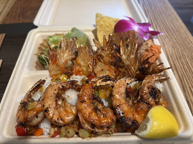 ガーリックシュリンプはボリュームたくさんで、アサイーは濃厚です...
