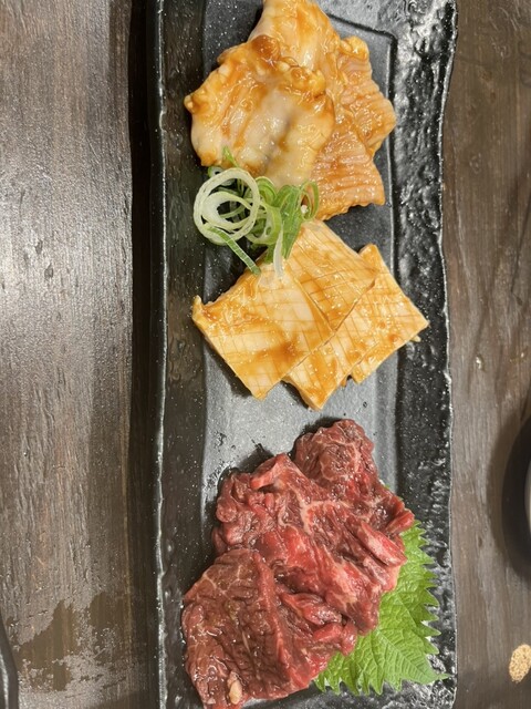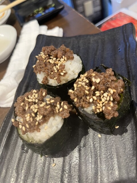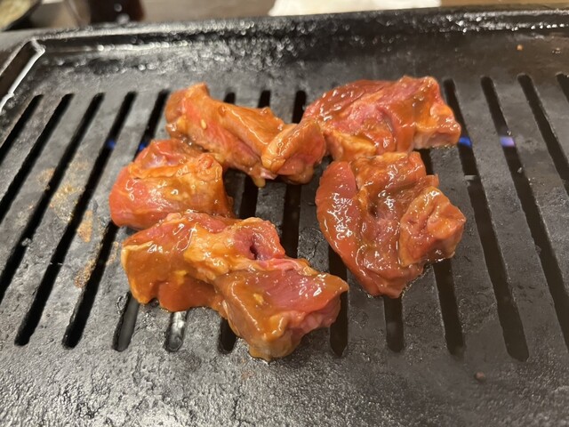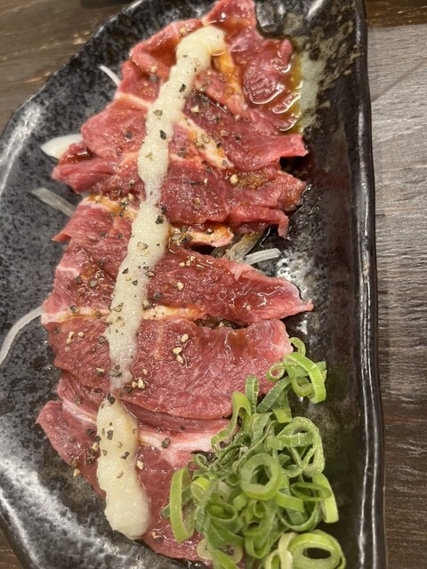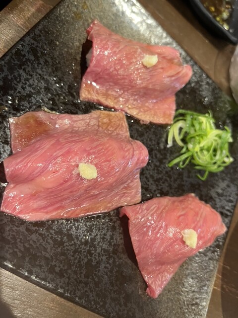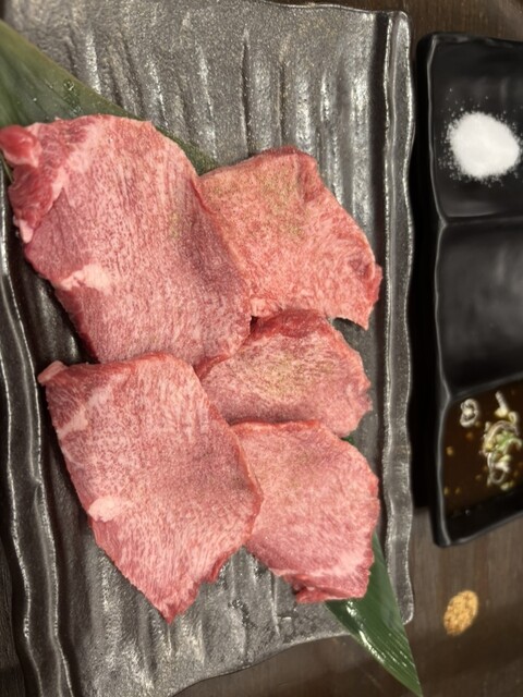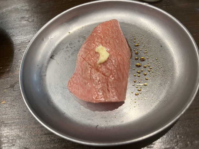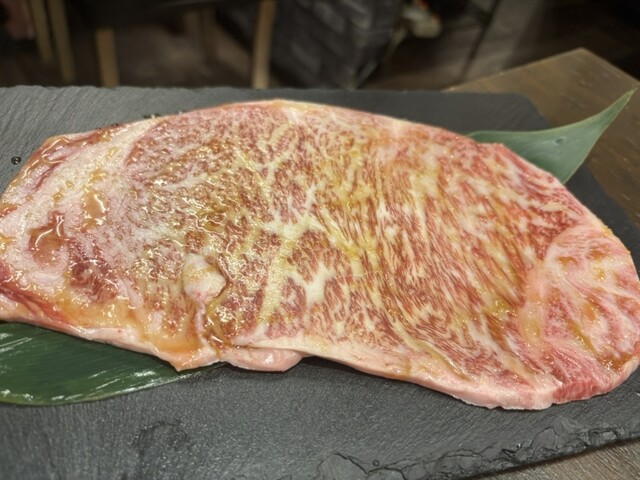 サーロインは豪快に焼き台の上でサッと焼いて食べて自分で切って食べれる。塩わさびが美味しく食べれた。