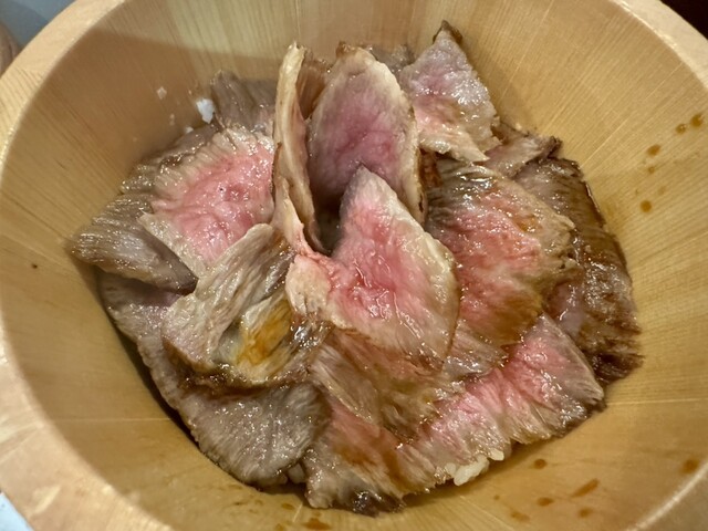 "肉まぶし"はお櫃に入れられて登場するのですが、1.5倍はお櫃の縁半分に肉が溢れてたので、2倍は一周肉が溢る事になりそうです(´⊙ω⊙`)