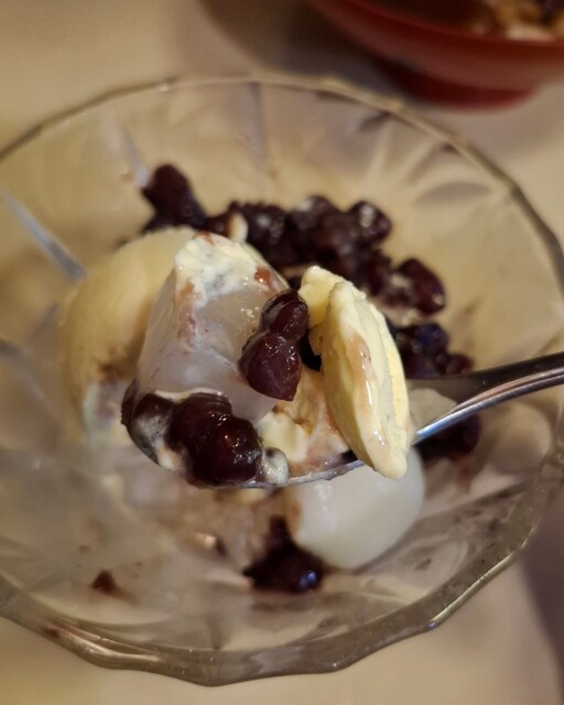 昭和の雰囲気の中甘く美味しいぜんざいをいただく