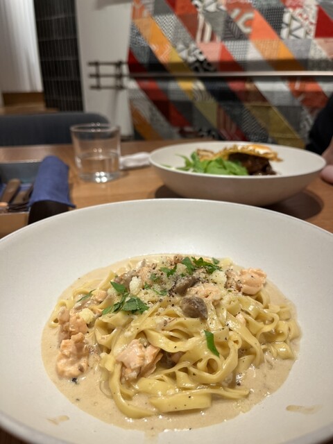 サーモンのパスタは優しめの味だが個人的にはとても美味しかった。