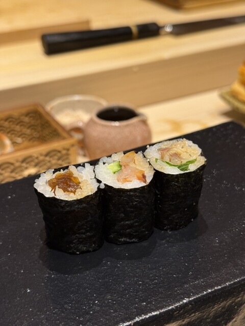 一品料理 11品、お鮨13貫、巻物の構成でした。