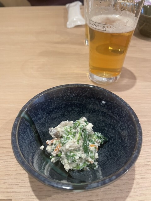 付き出しは白和え。女将さんに聞くと、菜の花入りとのことで、白和え好きの私は嬉しい一品♪