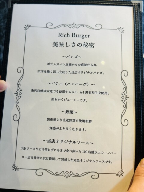 リッチバーガーのメニューもリッチバーガーを頼んでしまいました!