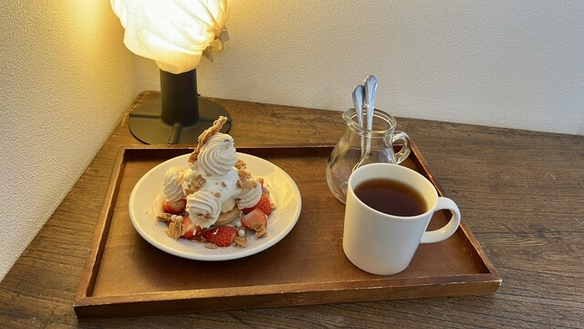 彼は追加でいちごのショートケーキも