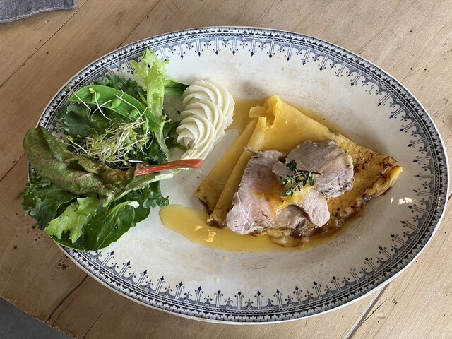 メインの豚肉はクレープの上にのっていました。