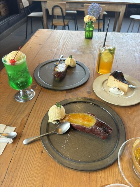 蜜芋のブリュレを食べたが、お芋がとても甘くて美味しかった!アイスをトッピングをして食べるのがおすすめ。