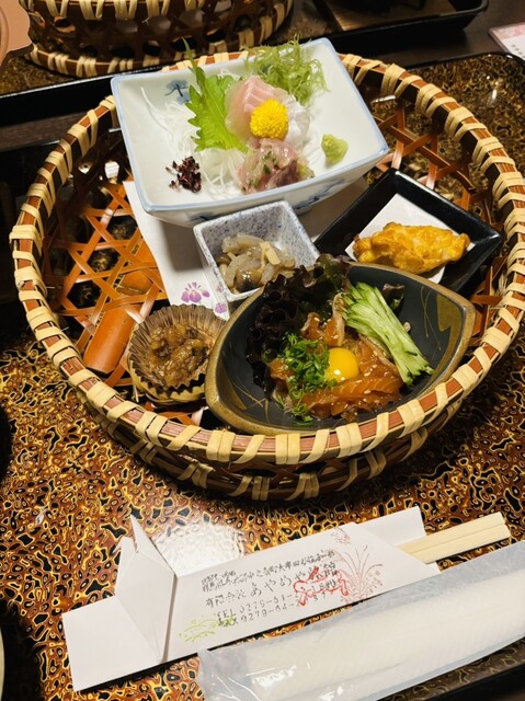 初めてお世話になりましたが斬新な料理が盛り沢山でとても美味しいいただきました。川魚のたたきに天ぷらは味噌仕立てのソース、はたまたナマズの焼き物など日本酒にドンピシャなお料理ばかりで思わずニンマリ。機会があれば是非リピしたいです。あやめや旅館さんご馳走様でした。