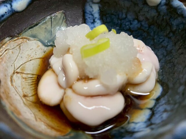 冷えた体を温めるためにお通しをつまみながら熱燗を一杯……ん………なんだこのお通し!!メッチャ美味しい!!「大豆の酢漬け」!
