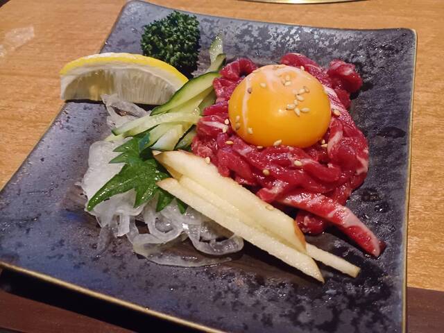 合間にいただくナムルやキムチの盛り合わせも上品な味付けで、箸休めにぴったり。さらに驚いたのが肉寿司とユッケ。鮮度抜群で、卵黄を絡めていただくユッケは濃厚そのもの。最後は冷たいデザートでスッキリと締めくくり、最初から最後まで非の打ち所がないコースでした。