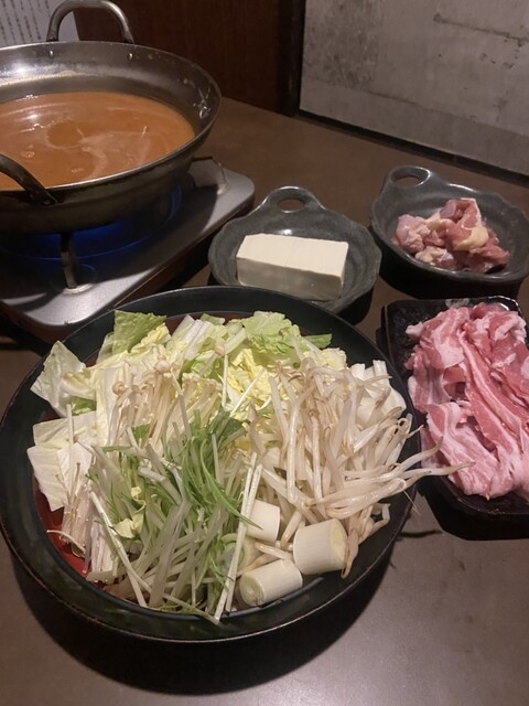 • 味噌チゲ鍋(豚・鶏・白菜・豆腐・もやし・ねぎ・えのき)