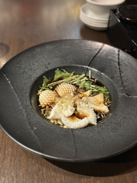 そして印象的だったのがイカの湯引き。湯引きならではのプリッとした食感が絶妙で、油淋鶏のソースに似た甘酸っぱい香港ソースとの相性も抜群♪とても美味しかったです!