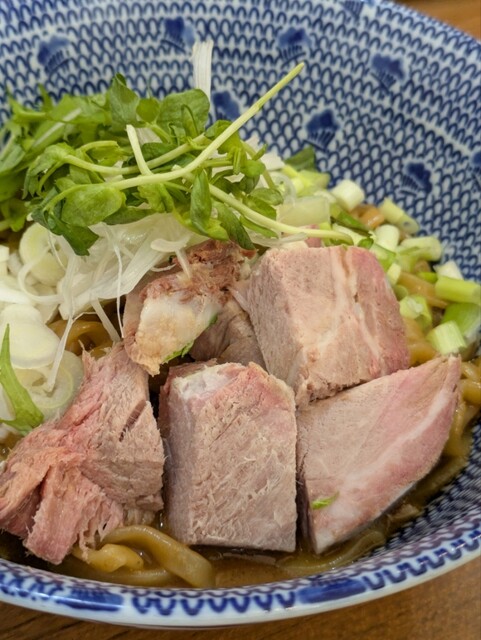 チャーシューは分厚く、割りスープで飲みほせば後味スッキリ。