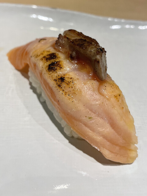 コースには入っていませんでしたので、お好みタイムで名物のサーモンのフォアグラ乗せを注文。