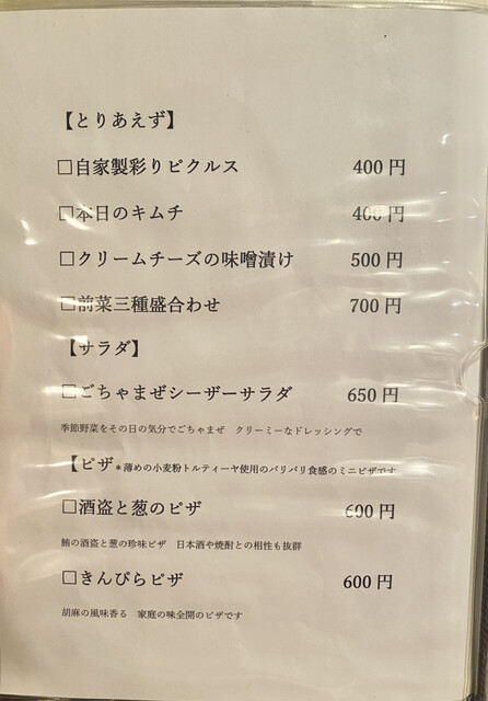 注文すると少し時間が掛かるとの事だったので前菜三種盛も追加☆前菜はなんだろう?と考えながらメニューをペラペラと眺めていると食べたい料理が多い!美味しかったらリピしよう♡