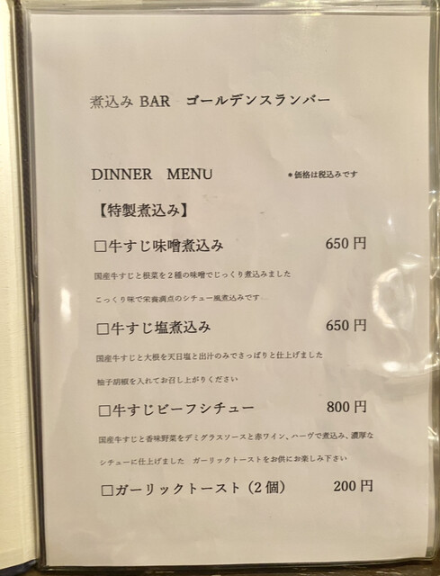 煮込みBAR ゴールデンスランバーで牛すじビーフシチューを食べた私の感想とレビュー&口コミ