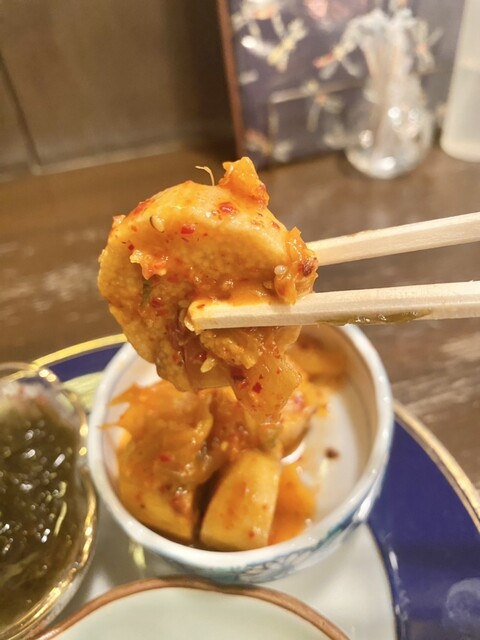 長芋キムチは辛すぎずにキムチと長芋がベストマッチ!長芋の食感も楽しみながモグモグと食べれて良いつまみ☆