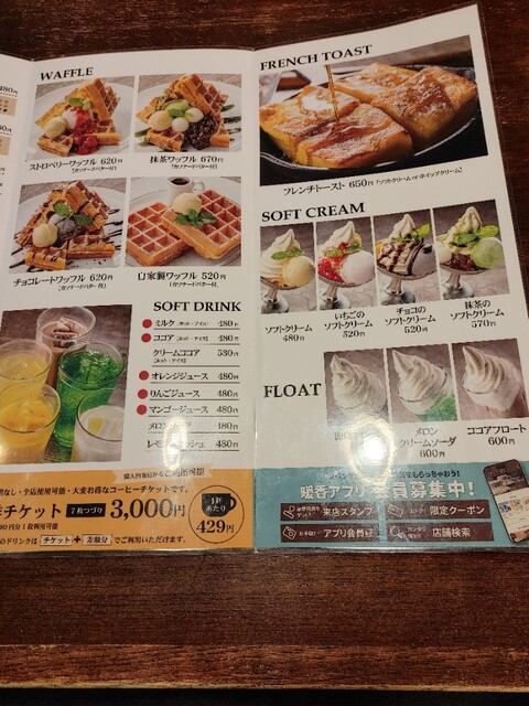 ワッフル、フレンチトースト、ソフトクリーム食べたいものが、いっぱいありますね。