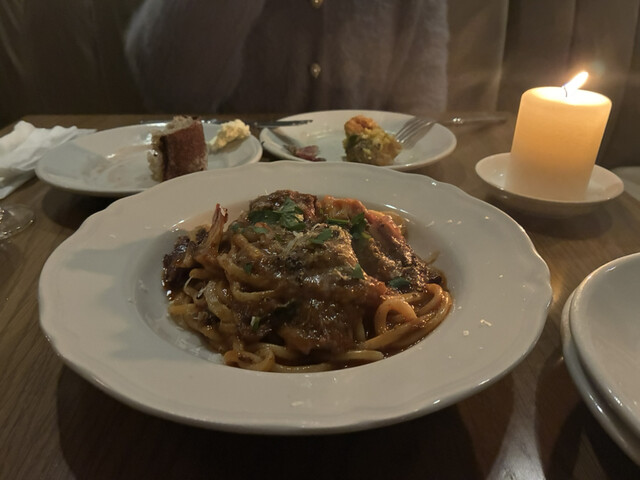 ピーチ蝦夷鹿のラグーパスタ