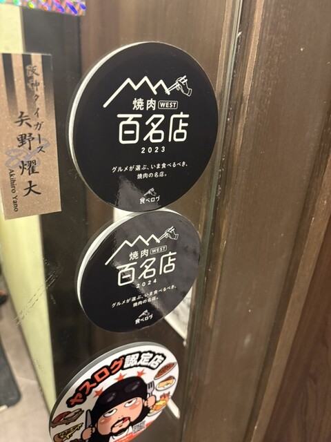焼肉WEST百名店2023,2024受賞店です。