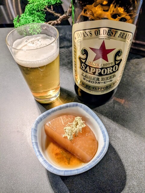 大衆割烹の温度感に、未来系バーのクールさをブレンドしたような、なんとも雰囲気の良い空間。今夜はここで、喉と心をそっと潤すことに。