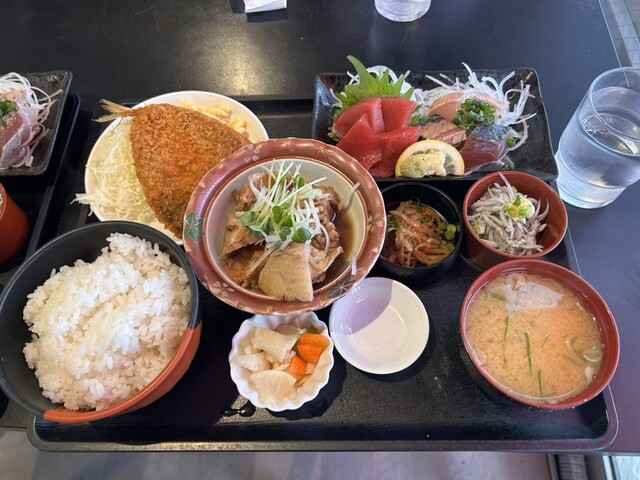 新鮮なお刺身とあら煮、アジフライと満足できるおすすめな定食です。どれもこれも大変美味しかったです。