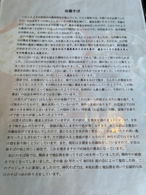 出雲そばの歴史や食べ方etc..などもお席に置かれていて、