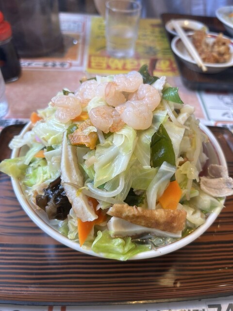 注文するとついてくるお肉のスープは、辛さが効いて...