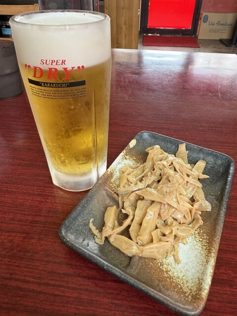 おつまみメンマ、生ビールと一緒のタイミングで提供してもらえて、ナイスなおつまみ。