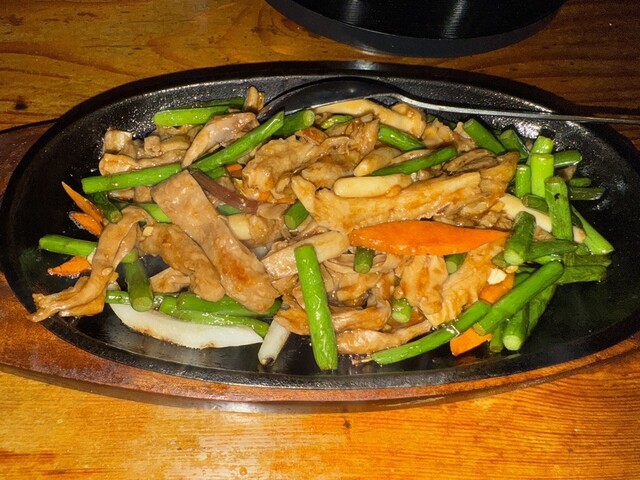 天津飯→たぶん海外の黒い醤油で甘辛タレ、美味い!